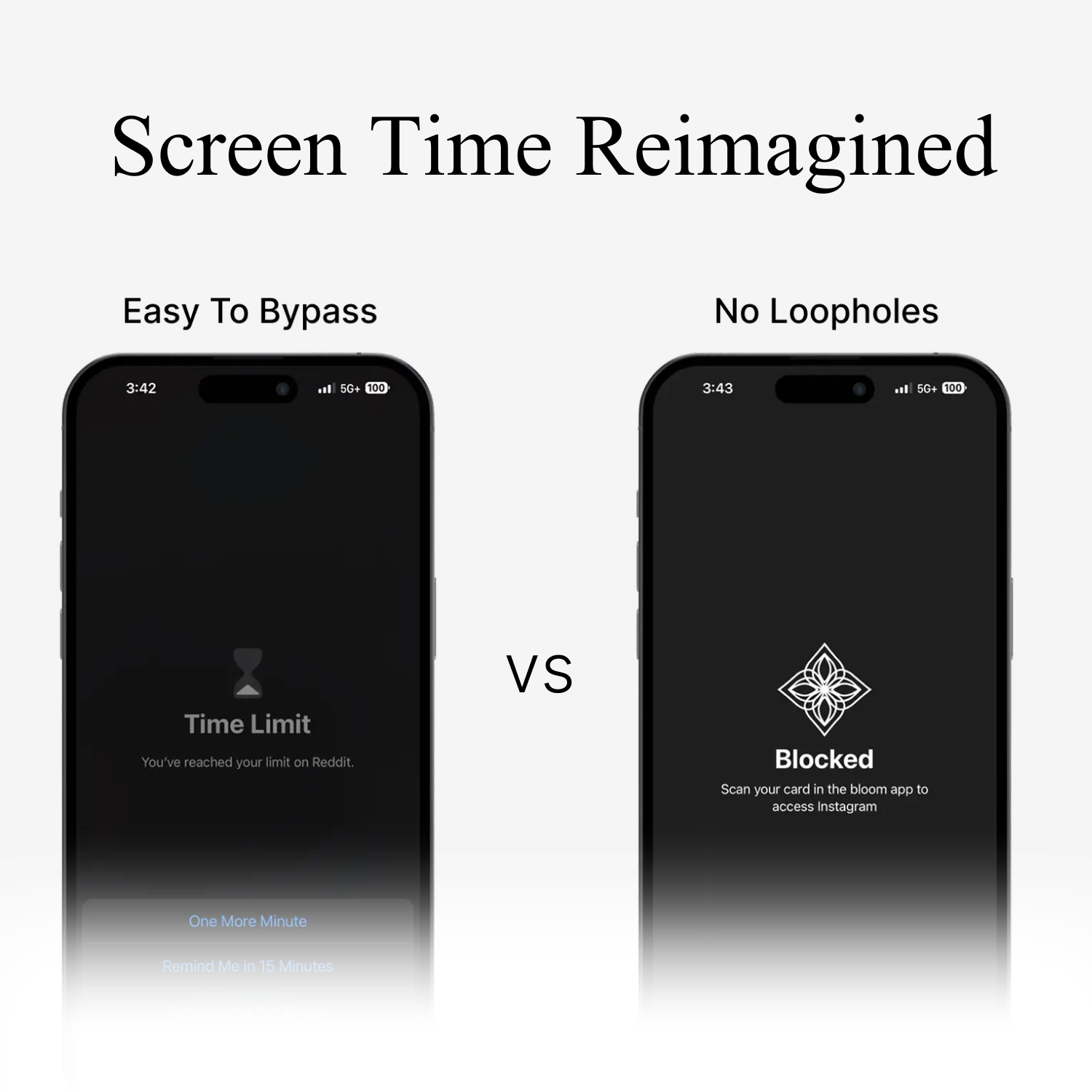 Physically tap your Bloom card to your phone (or set a schedule) to block those apps.
